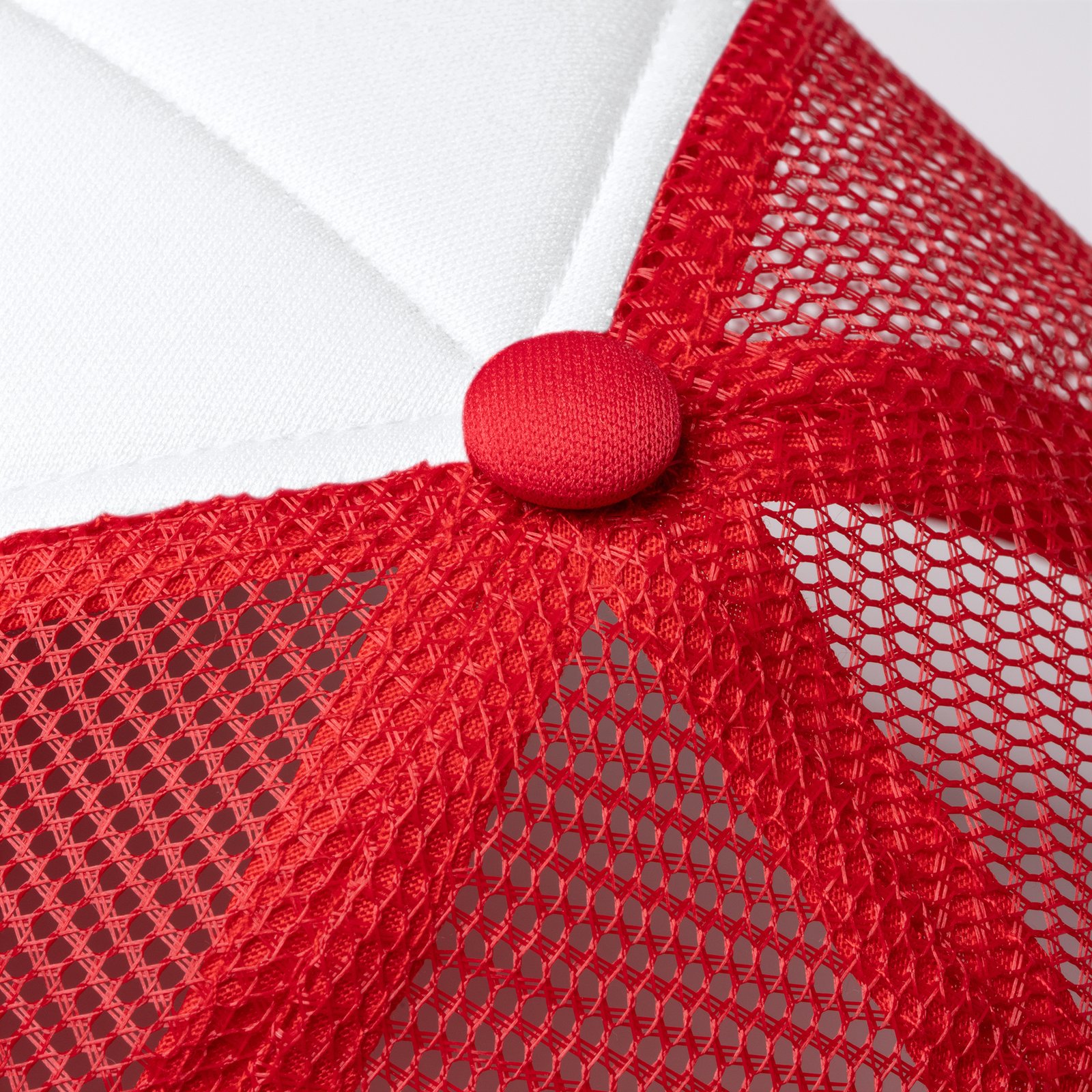Gorra de políester de 5 paneles con panel frontal acolchado en color blanco. Con parte trasera con rejilla y cierre ajustable.