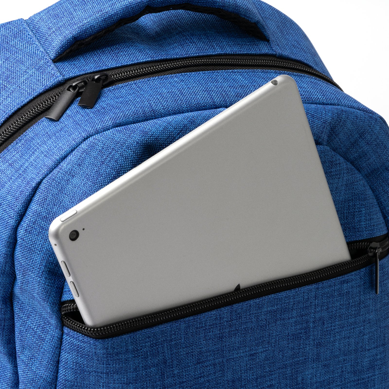 Mochila realizada en 600D RPET con acabado jaspeado. Asas y espalda acolchadas. Gran compartimento interior y bolsillo para portátil de de 15¨. Bolsillo exterior frontal y bolsillos laterales.